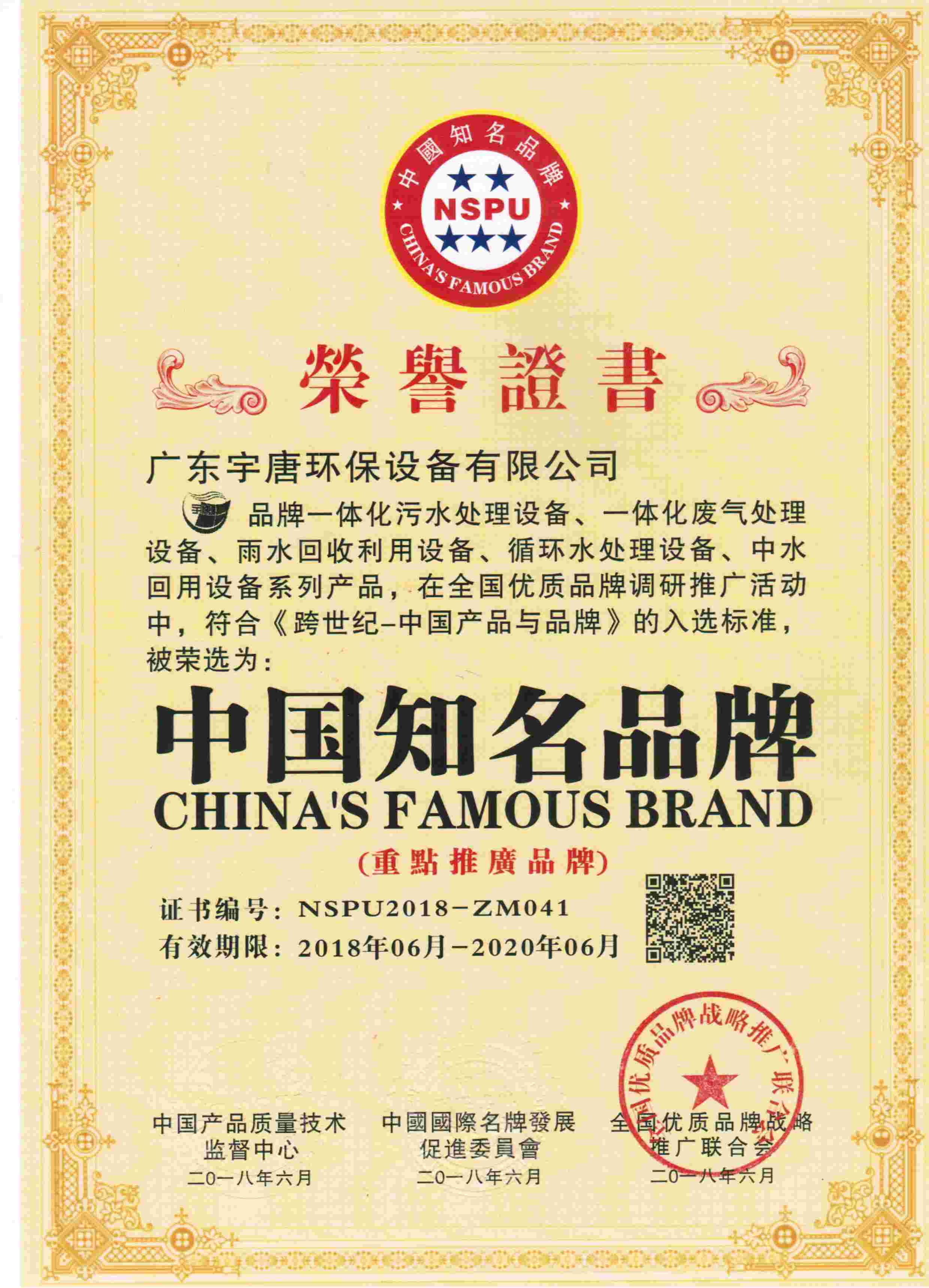 中国知名品牌证书
