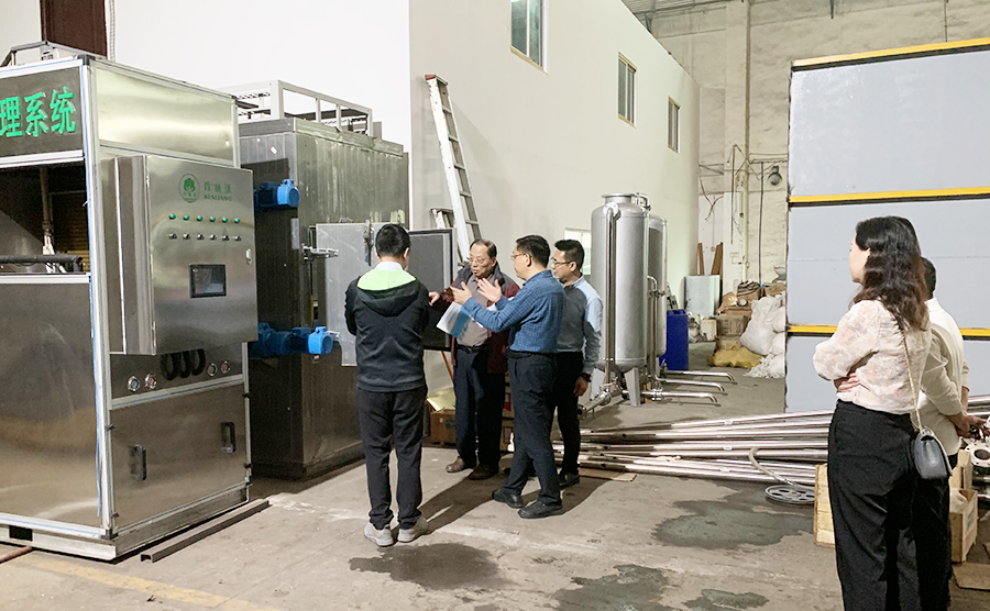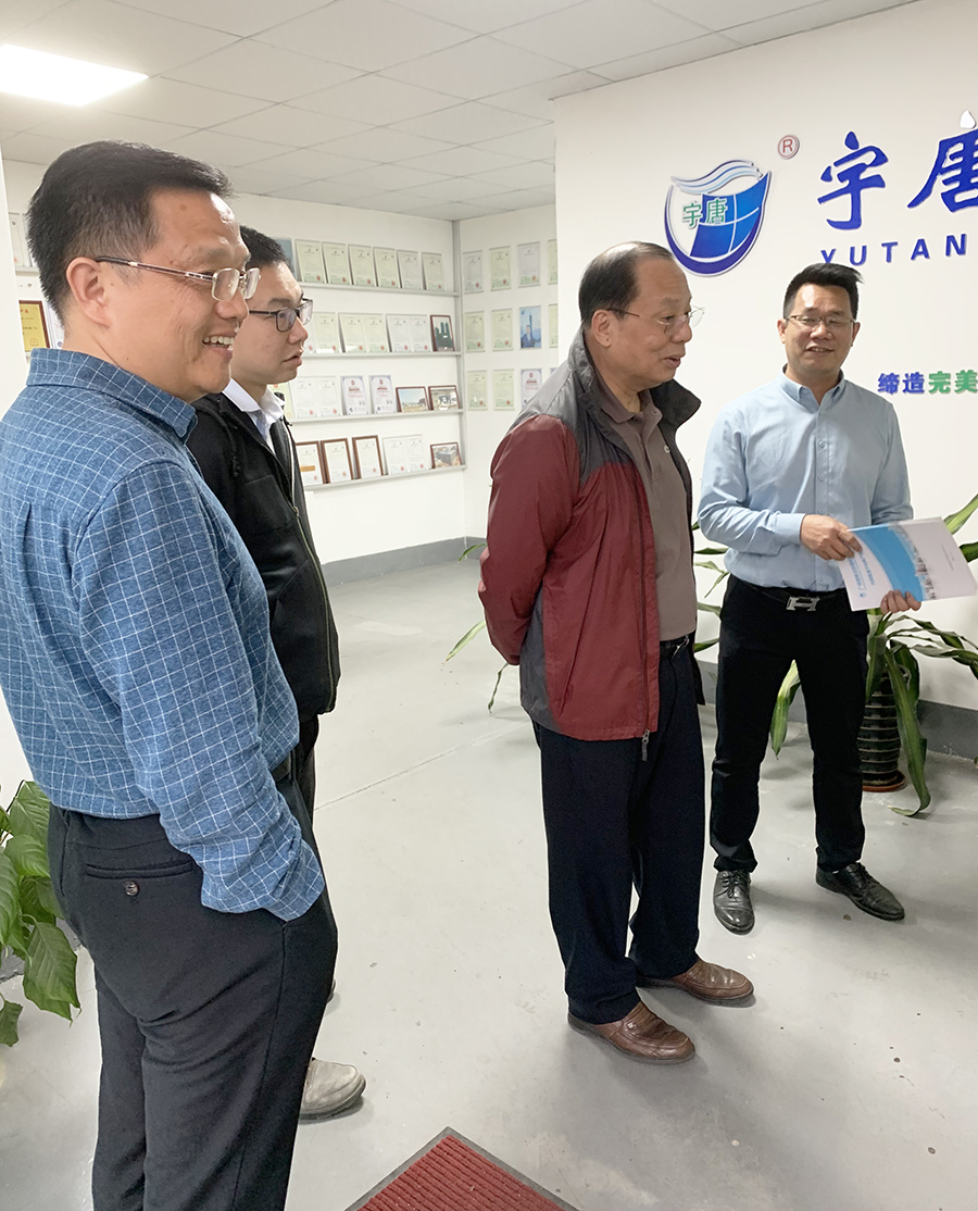 公司总经理唐永朗、市场总监王伟强首先带领参观了公司的生产车间并介绍了宇唐环保是国家高新技术企业,拥有多方面自主专利知识产权,公司主要业务涉及城镇黑臭水体治理、城镇生活污水处理、餐饮业含油脂废水隔油处理、工业污废水处理、雨水收集回用设备、海水淡化处理、中央空调循环水处理设备、饮用纯净水处理等领域。